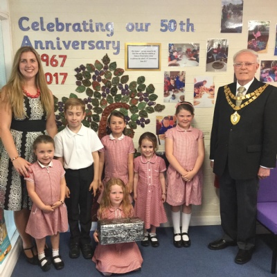 As part of our 50th Anniversary celebrations, Jon the Flying Potter joined us at Damson Wood to work with KS1 to create an anniversary art piece using clay. There are some photos on our News page but here is a video of Jon finishing a piece of work on the wheel - you can hear how much our pupils are enjoying it!