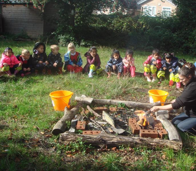 Forest School takes place outdoors whatever the weather (except in thunderstorms and very high winds) therefore it is crucial that your child has appropriate warm, waterproof clothing and suitable footwear. These can be left in a bag on your child’s peg, but we will endeavour to send them home if your child gets wet or muddy during their session.